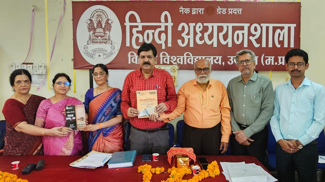 विक्रम विश्वविद्यालय उज्जैन, मध्य प्रदेश के हिंदी विभाग में अंतरराष्ट्रीय मानक प्राप्त रिसर्च जर्नल "समागम" के माह जून एवं जुलाई 2025 का विमोचित किया गया। इस अवसर पर हिंदी विभागाध्यक्ष डॉ. शैलेन्द्र कुमार शर्मा एवं सहायक संपादक प्रोफेसर विशाला शर्मा के साथ सभी प्राध्यापक गण।